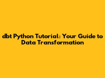Dbt Python Tutorial: Your Guide To Data Transformation