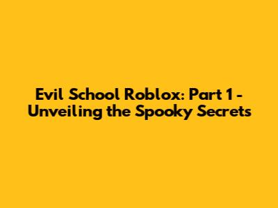 Evil School Roblox: Part 1 - Unveiling The Spooky Secrets