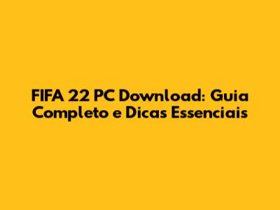 FIFA 22 PC Download: Guia Completo E Dicas Essenciais