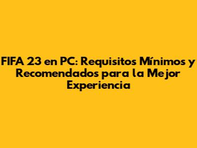 Requisitos Recomendados de FIFA 23 para PC: ¡Eleva tu Experiencia de Juego!