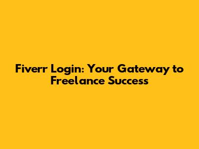Fiverr Login: Your Gateway To Freelance Success