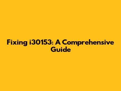 Fixing I30153: A Comprehensive Guide