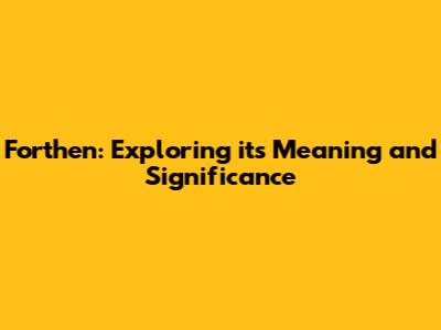 Forthen: Exploring Its Meaning And Significance