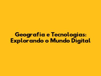 Geografia E Tecnologias: Explorando O Mundo Digital
