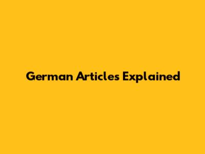 German Articles Explained