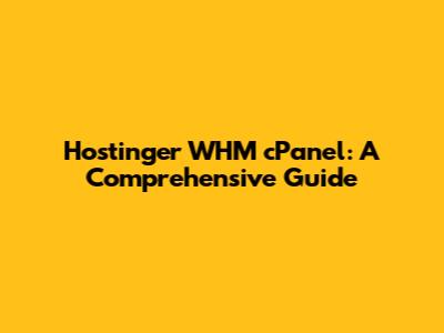 Hostinger WHM cPanel: A Comprehensive Guide