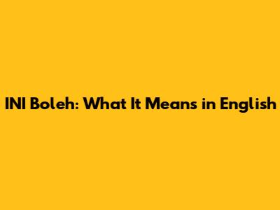 INI Boleh: What It Means In English