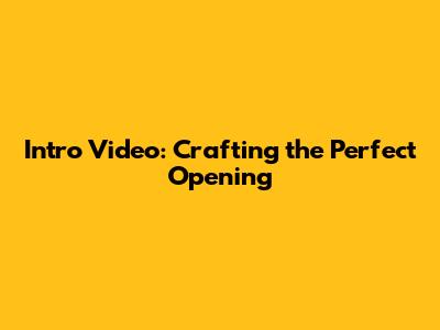 Intro Video: Crafting The Perfect Opening