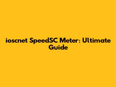 Ioscnet SpeedSC Meter: Ultimate Guide