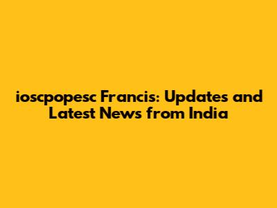 Ioscpopesc Francis: Updates And Latest News From India