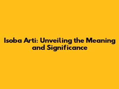 Isoba Arti: Unveiling The Meaning And Significance