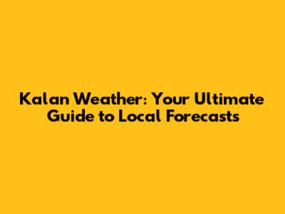 Kalan Weather: Your Ultimate Guide To Local Forecasts