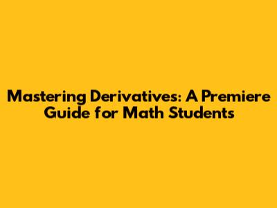 Mastering Derivatives: A Premiere Guide For Math Students