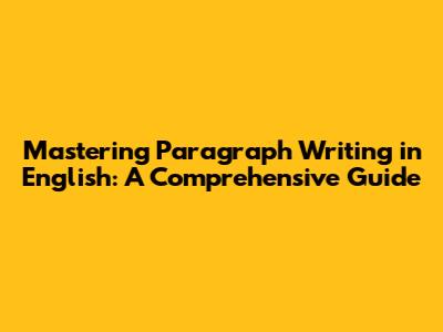 Mastering Paragraph Writing In English: A Comprehensive Guide