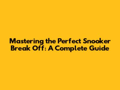 Mastering The Perfect Snooker Break Off: A Complete Guide