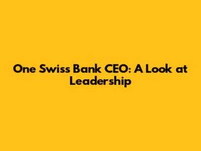 One Swiss Bank CEO: A Look At Leadership