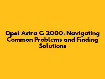 Opel Astra G 2000: Common Issues & Solutions