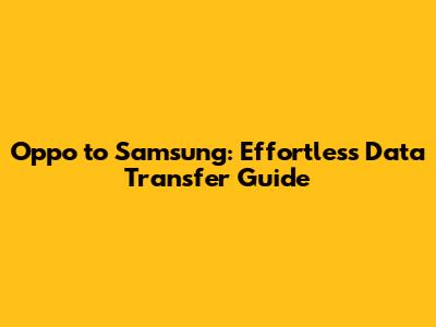 Oppo To Samsung: Effortless Data Transfer Guide