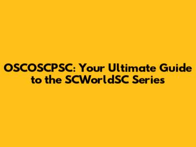 OSCOSCPSC: Your Guide To The SCWorldSC Series