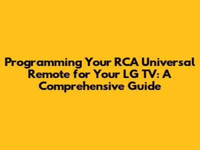 Program RCA Remote To LG TV: Easy Guide