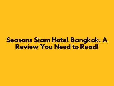 Hey guys! Planning a trip to Bangkok and looking for the perfect place to stay? Let's dive into a comprehensive review of the Seasons Siam Hotel Bangkok. This place has been making waves, and I wanted to give you the lowdown on everything from the rooms to the restaurants, so you can make an informed decision. Trust me; this review is packed with all the juicy details you need!