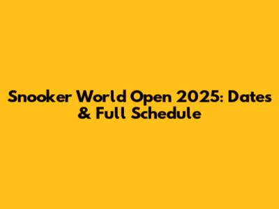 Snooker World Open 2025: Dates & Full Schedule