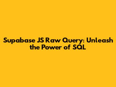 Supabase JS Raw Query: Unleash The Power Of SQL