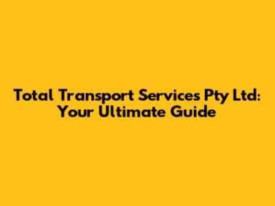 Hey guys! Ever wondered about Total Transport Services Pty Ltd? Well, buckle up because we're diving deep into everything you need to know about this company. Whether you're a business looking for reliable logistics solutions or just curious about the transport industry, this guide has got you covered. Let's get started!