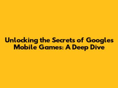 Unlocking The Secrets Of Google's Mobile Games: A Deep Dive