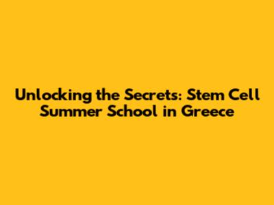 Unlocking The Secrets: Stem Cell Summer School In Greece