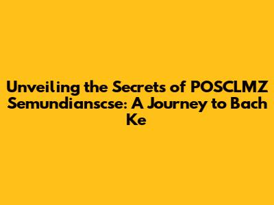 Unveiling The Secrets Of POSCLMZ Semundianscse: A Journey To Bach Ke