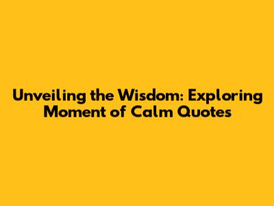 Unveiling The Wisdom: Exploring Moment Of Calm Quotes