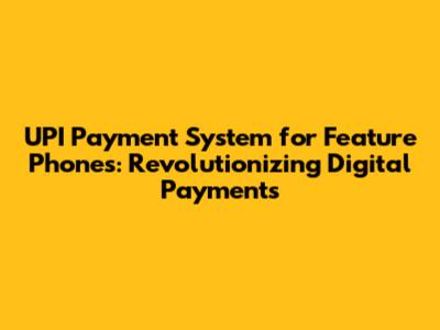UPI On Feature Phones: Revolutionizing Digital Payments