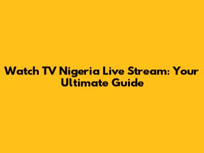 Watch TV Nigeria Live Stream