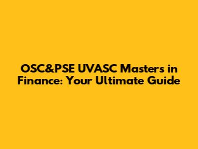 Your Guide To OSC&PSE And UVASC Masters In Finance